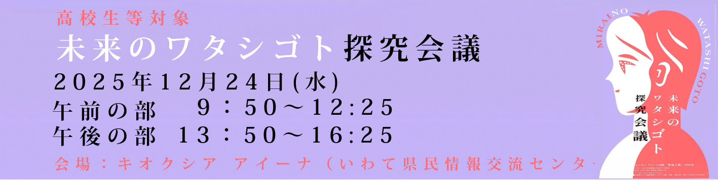 おもに岩手県内の高等学校1、2年生を対象に、県内の大学や企業を通じて、岩手の「学び」と「仕事」への理解を深める「未来のワタシゴト探究会議」を開催します。