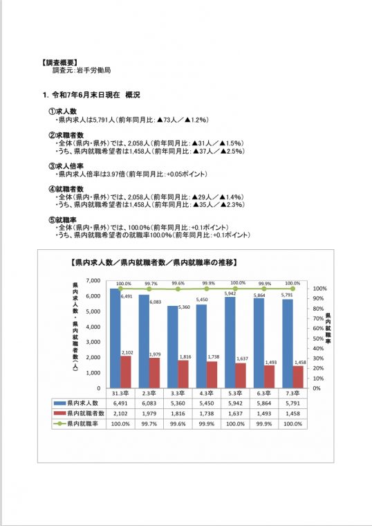 2025.08.05 教職員の方 令和7年3月新規高等学校卒業者の職業紹介状況(令和7年6月末現在)を更新しました 令和7年3月新規高等学校卒業者の職業紹介状況(令和7年6月末現在)が公表されました。 一覧へもどる