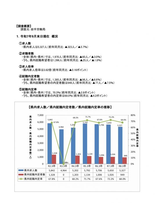 2025.11.04 教職員の方 令和8年3月新規高等学校卒業者の職業紹介状況(令和7年9月末現在)を更新しました 令和8年3月新規高等学校卒業者の職業紹介状況(令和7年9月末現在)が公表されました。 一覧へもどる