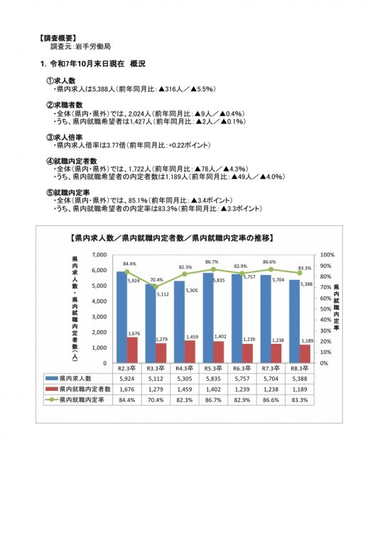 2025.12.02 教職員の方 令和8年3月新規高等学校卒業者の職業紹介状況(令和7年10月末現在)を更新しました 令和8年3月新規高等学校卒業者の職業紹介状況(令和7年10月末現在)が公表されました。 一覧へもどる